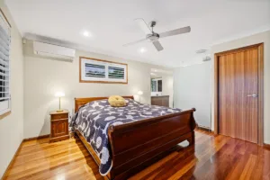 Upstairs features beautiful timber flooring and a spacious open-plan kitchen, living and dining area that flows effortlessly onto the balcony, perfect for enjoying bay breezes. Downstairs offers a large second living area and three well-positioned bedrooms, ideal for families needing separation and flexibility.